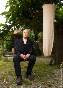 Dr René Flurin, près d’un nouveau modèle de ruche en tissu, lors de l’inauguration du microsite bio à Lahitte-Toupière (le 29 juin 2012).