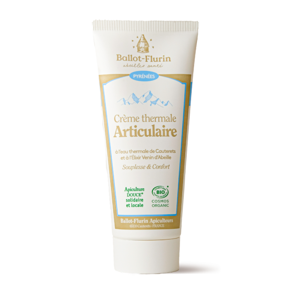 Première préparation au monde alliant la puissance de l’apithérapie aux vertus d’une eau thermale riche en soufre et en silice reconnue pour son usage en rhumatologie, notre Crème thermale Articulaire soulage les tensions et assouplit naturellement. Riche en actifs nobles remarquables, elle contient notamment de la propolis blanche scientifiquement reconnue pour sa richesse en antioxydants (polyphénols), ainsi que des plantes de pays aux vertus anti-inflammatoires et apaisantes.
