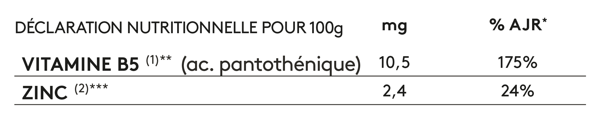 Ingrédients : 100% gelée royale* française *ingrédients issus de l’Agriculture Biologique. Certifié par FR-BIO-10