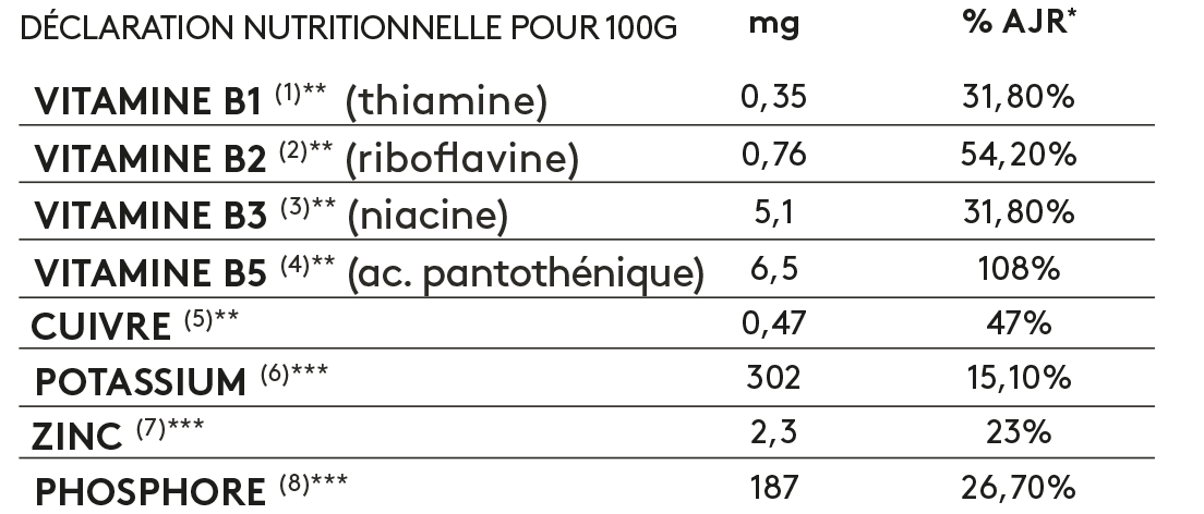 *Apport Journalier Recommandé. **Riche en. ***Source de.