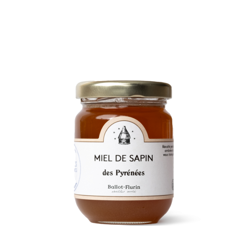 Le miel de sapin est en réalité un miellat provenant majoritairement des exsudats de pucerons qu'ils déposent sur les épines des sapins et et dont les abeilles se nourrissent.