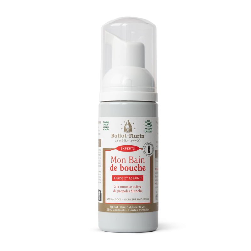 Le bain de bouche de Ballot-Flurin est une production française. Il contient des microbulles de propolis blanche locale et 100% bio